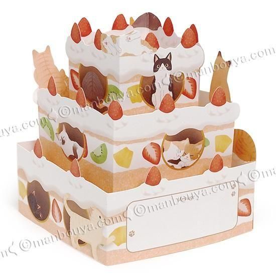 <img class='new_mark_img1' src='https://img.shop-pro.jp/img/new/icons2.gif' style='border:none;display:inline;margin:0px;padding:0px;width:auto;' />誕生日カード バースデーカード 立体 ケーキ 猫 飾れる グリーティングカード ケーキと猫 エヌビー社
