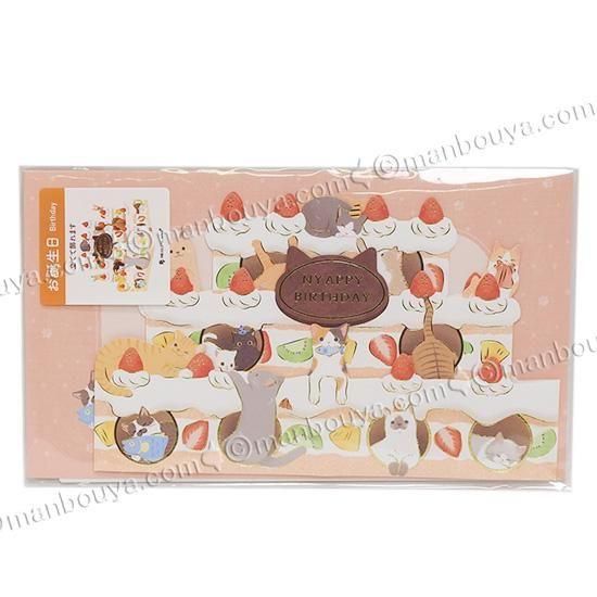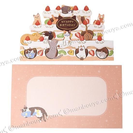 誕生日カード バースデーカード 立体 ケーキ 猫 飾れる グリーティングカード ケーキと猫 エヌビー社