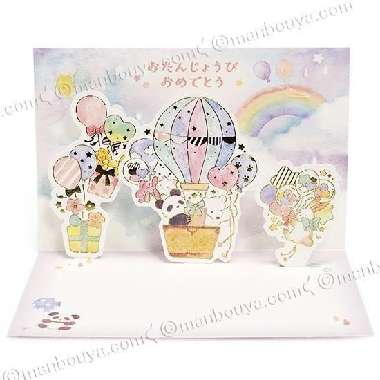 うさぎ パンダ 誕生日カード バースデーカード 立体 ポップアップ グリーティングカード 気球 エヌビー社