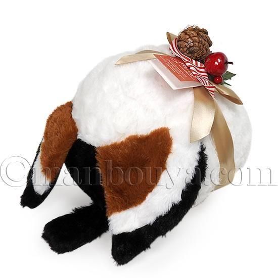 株式会社アミューズさんのブランケット入りぬいぐるみ。リボンとオーナメントをつけたクリスマスバージョンです。