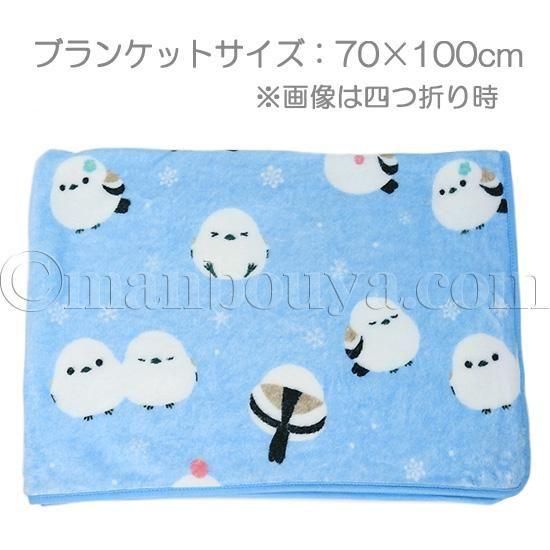 明るいブルーのブランケットにもシマエナガがいっぱい!