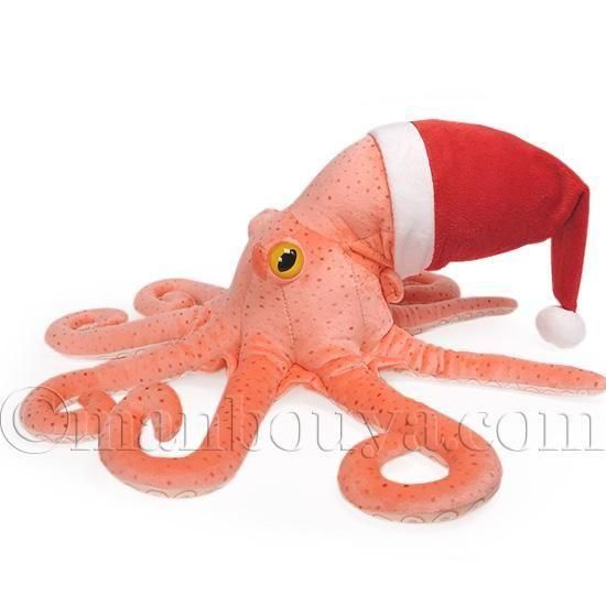 サンタクロースの帽子を被った、海の生き物蛸のぬいぐるみ。