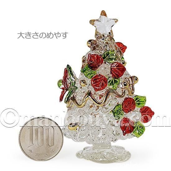 クリスマスツリー ガラス細工 ミニチュア ディスプレイ 置物 飾り ポインセチア ミニツリー フォーカート