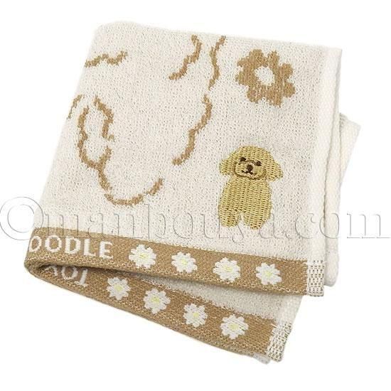 トイプードルデザインのジャガードミニタオル。