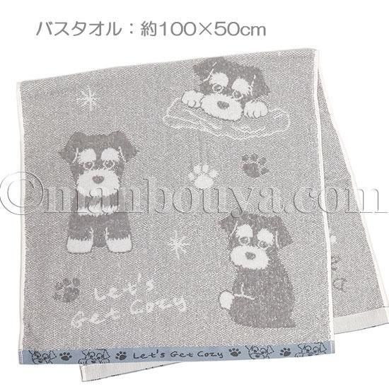 ミニチュアシュナウザー グッズ 犬 雑貨 バスタオル フェイスタオル セット 薄手 グレー シュガーフェイス