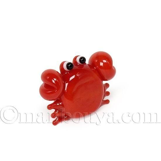 ミニチュアガラス細工の海の生き物。カニのガラス製フィギュア。